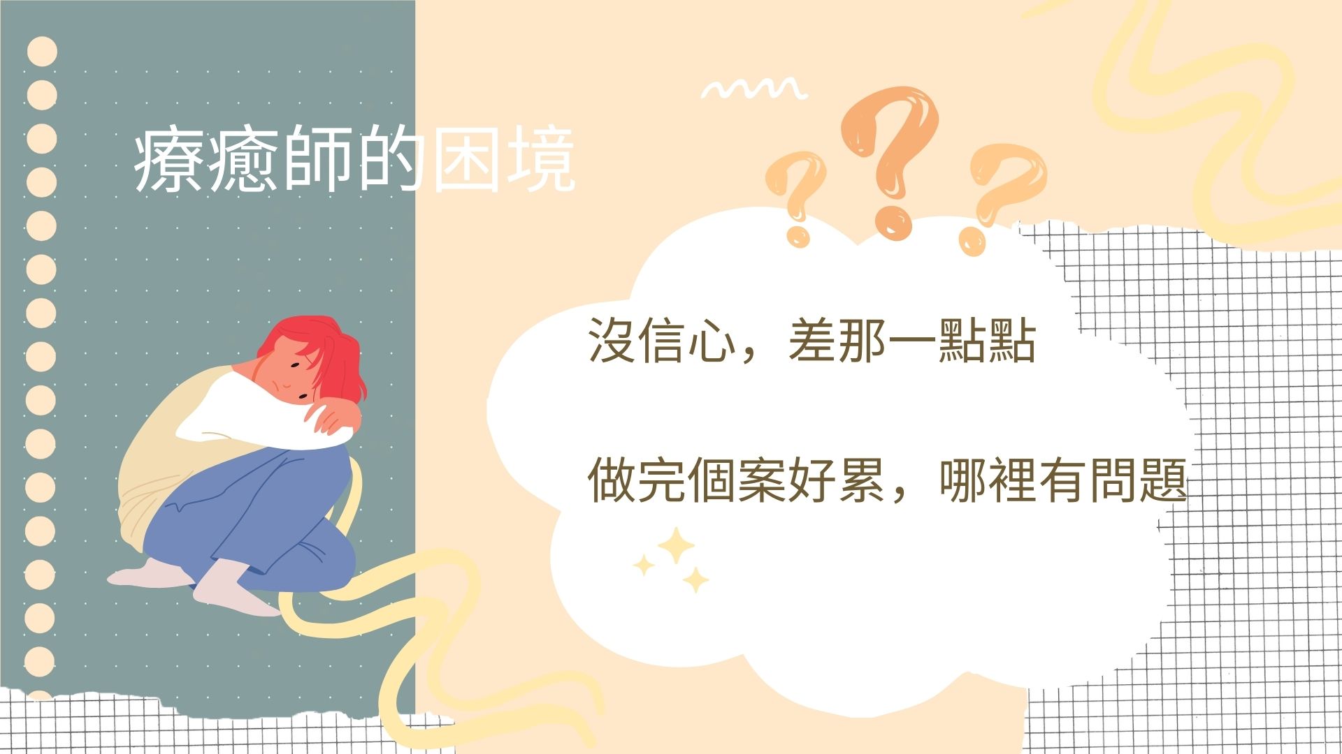👉缺乏信心,不確定自己是否做得好,會不會做錯傷害到來訪者