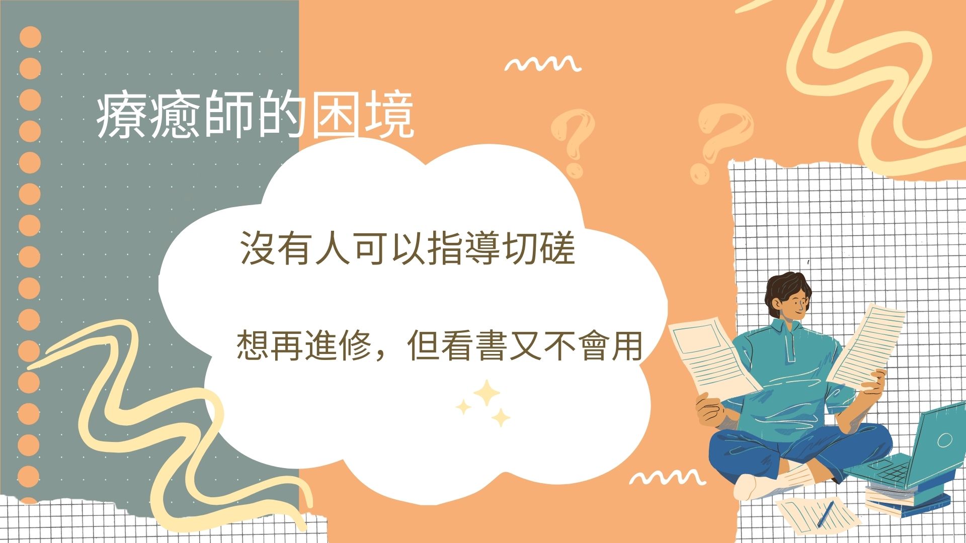 👉想成為療癒師,僅僅受100小時催眠訓練後仍覺得不會接案:聽不懂個案的議題,不知道怎麼作對個案最好,渴望得到真正的訓練者