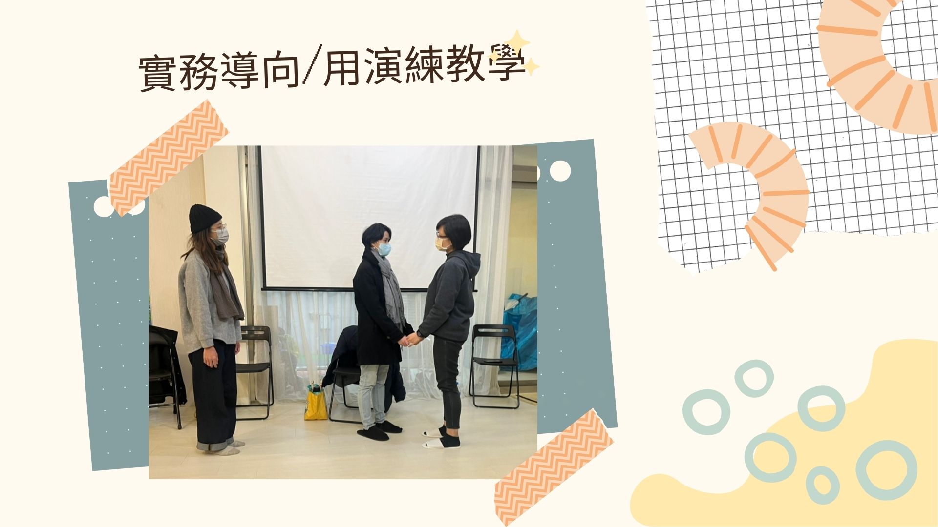 年嘉老師會使用完形擅長的體驗活動,生動地引導學員親身經驗,將苦澀的理論轉為活潑學習,課堂笑聲不斷,上過都大呼難忘。