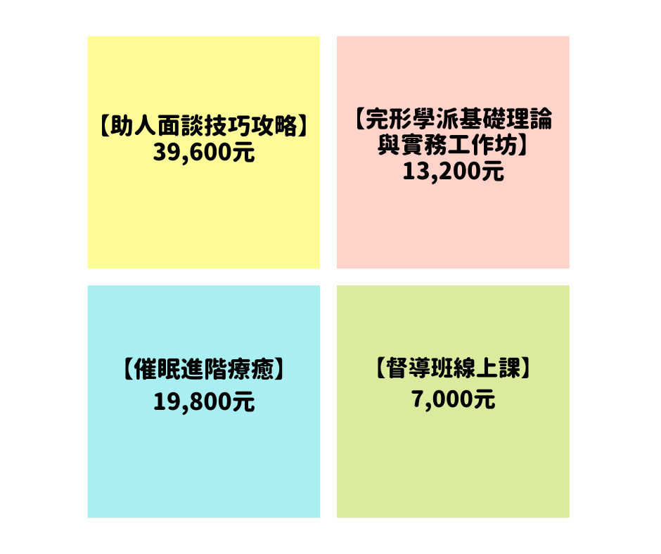 學費:📢 總價台幣79,600元 (四模塊共11堂全日課程+4堂線上督導)